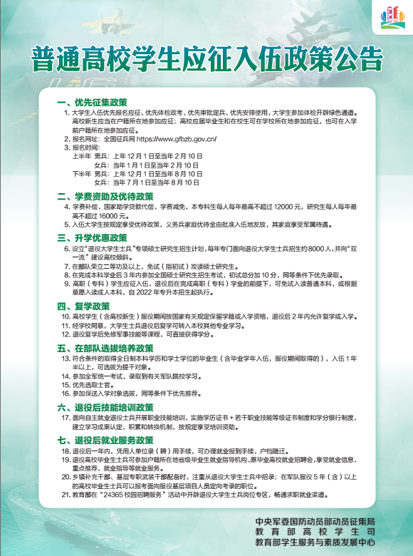 转发:普通高校毕业生基层就业、应征入伍、自主创业政策公告