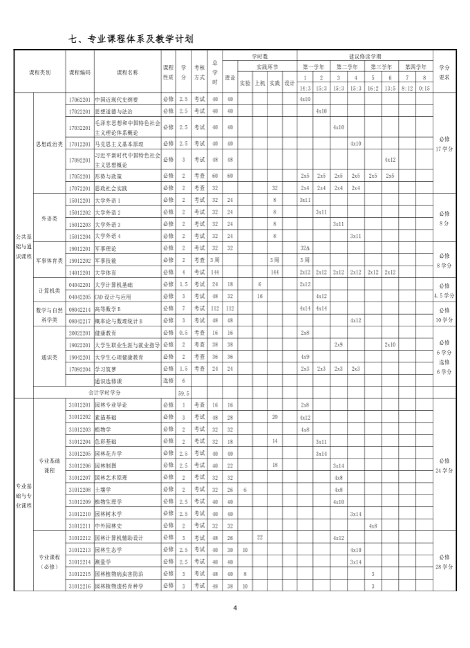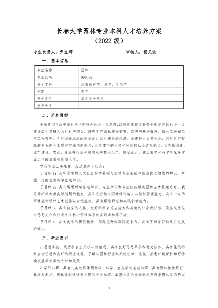 长春大学园林专业本科人才培养方案(2022 级)
