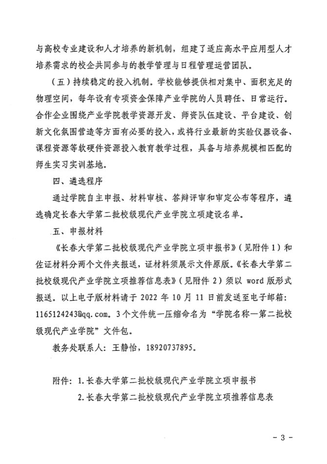 关于开展长春大学第二批校级现代产业学院立项建设工作的通知