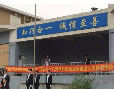 今天是五月四日,也是我们全国青年人自己的节日。为纪念五四运动98周年、引导学生继承并弘扬五四传统和五四精神。清晨,我校在西校区运动场隆重举行五四青年节特别升旗仪式。当五星红旗在我们面前升起, 嘹亮的国歌声回荡在我们耳畔。当五月的春风再度吹绿杨柳, 吹进我们樱花学校的每个角落, 我们迎来了五月的第一个升旗仪式——践行五四精神。