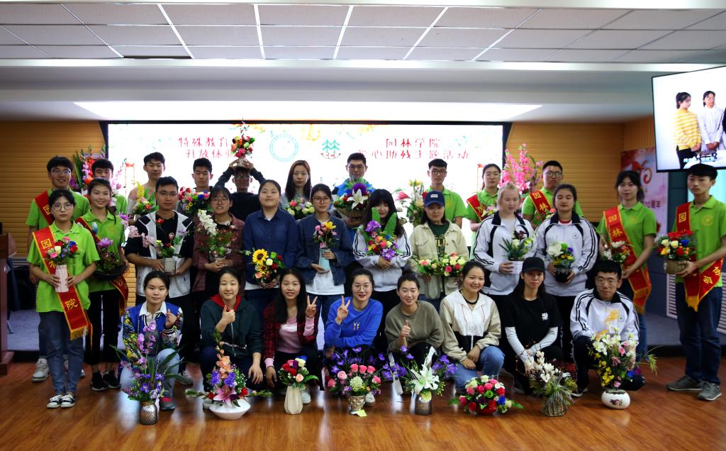 5月19日是全国第二十九个助残日,学校举办了特殊教育学院开放体验日活动。期间,yl6809永利官网与特殊教育学院共同组织承办了“爱心彩虹·心手相牵”插花艺术交流活动,学校有关领导、各院部师生代表、校外共建单位代表、相关媒体记者和部分市民共同参与了活动。