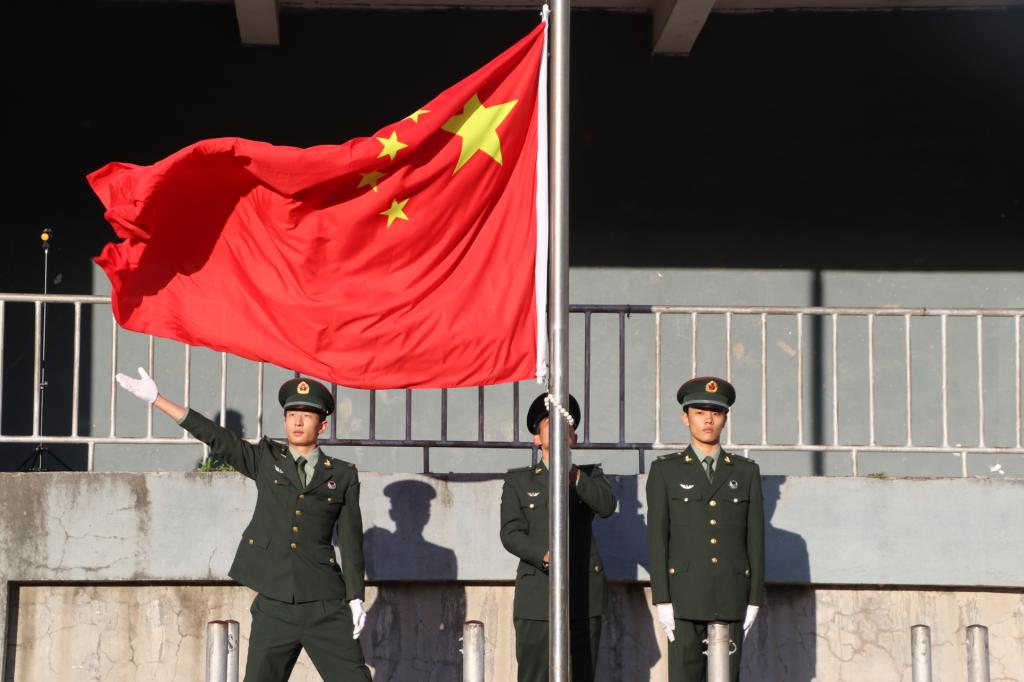 国旗缓缓升起,就如祖国母亲朝着更远的目标前进,坚毅稳定,朝着更高处一步步攀升,我们久久伫立,表达对祖国满腔的热爱和祝福。