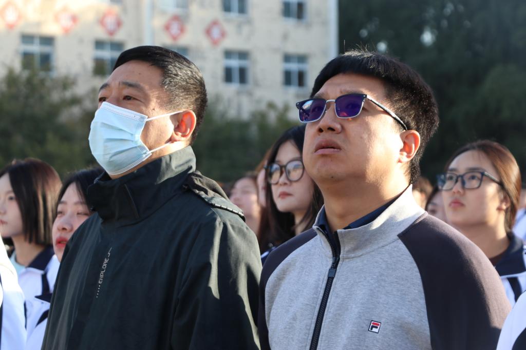 五星红旗迎风飘扬,在蔚蓝的天空展现出她优美身姿,长大学子用真诚炽热的目光注视着国旗缓缓升起。