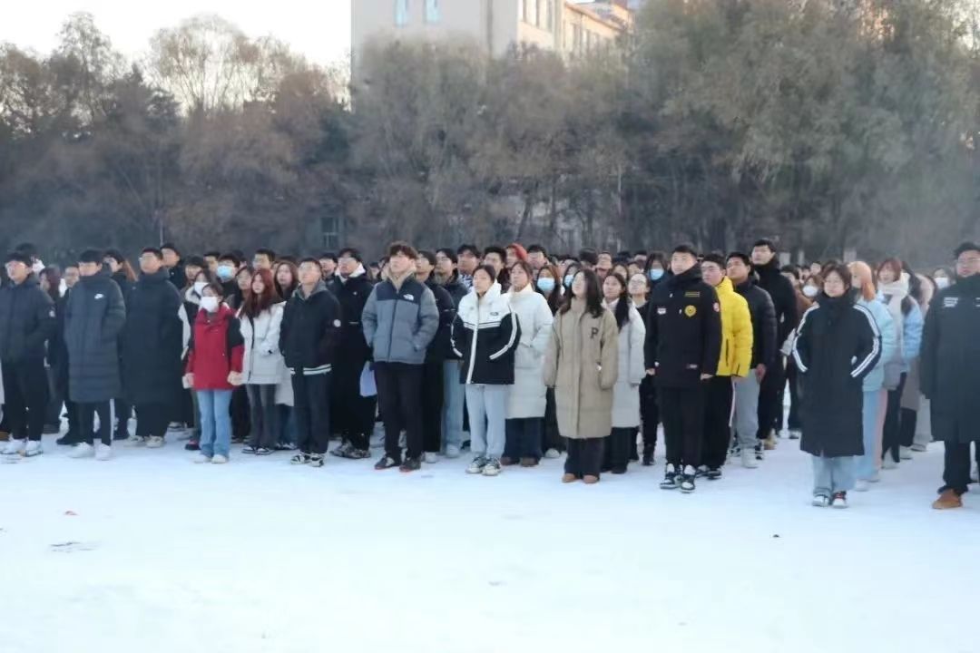 2023年11月20日7时,“明德解行立志,铸就无悔青春”主题升旗仪式在长春大学西校区田径场举行,yl6809永利官网全体学生参加。