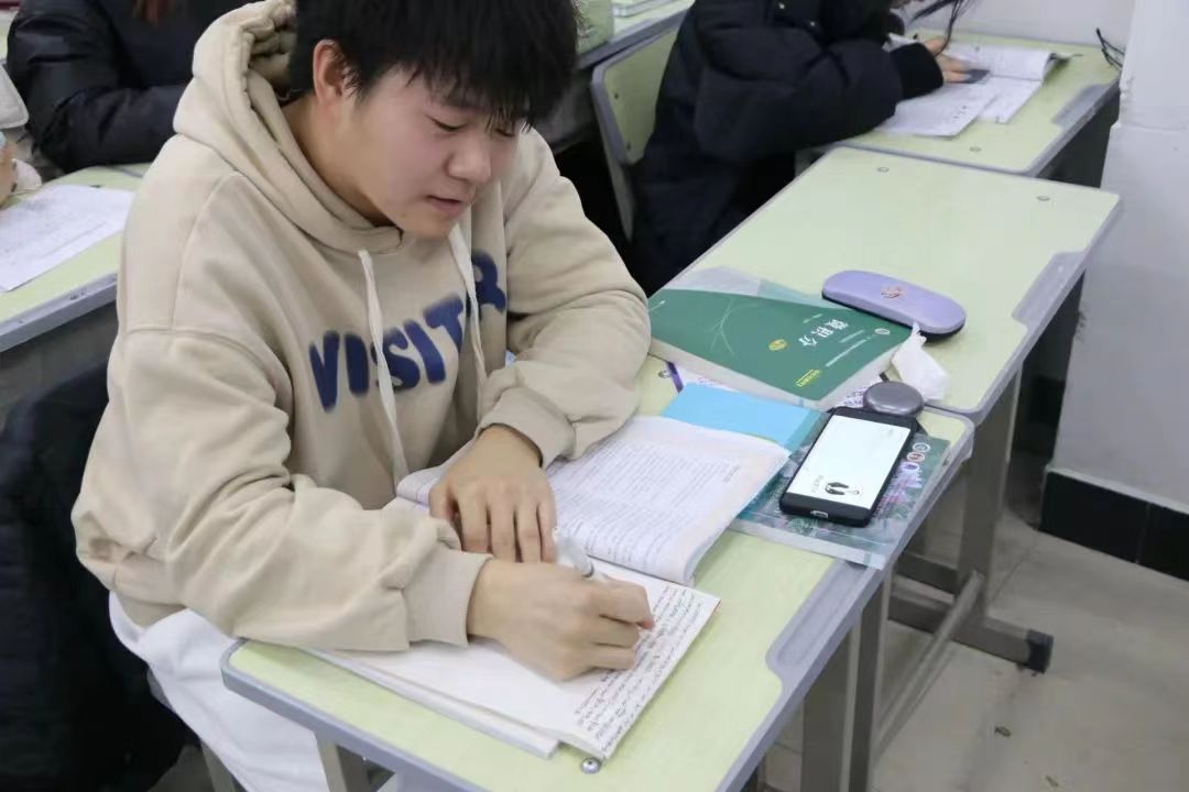 笔与纸的摩擦,书与手的碰撞,写下的是对理想的渴望,同学们奋笔疾书,把握晚自习的每分每秒,写字声,翻书声,在这安静的教室时不时响起,好似小小的水滴落入大海,无声无息却激起一圈圈波纹。