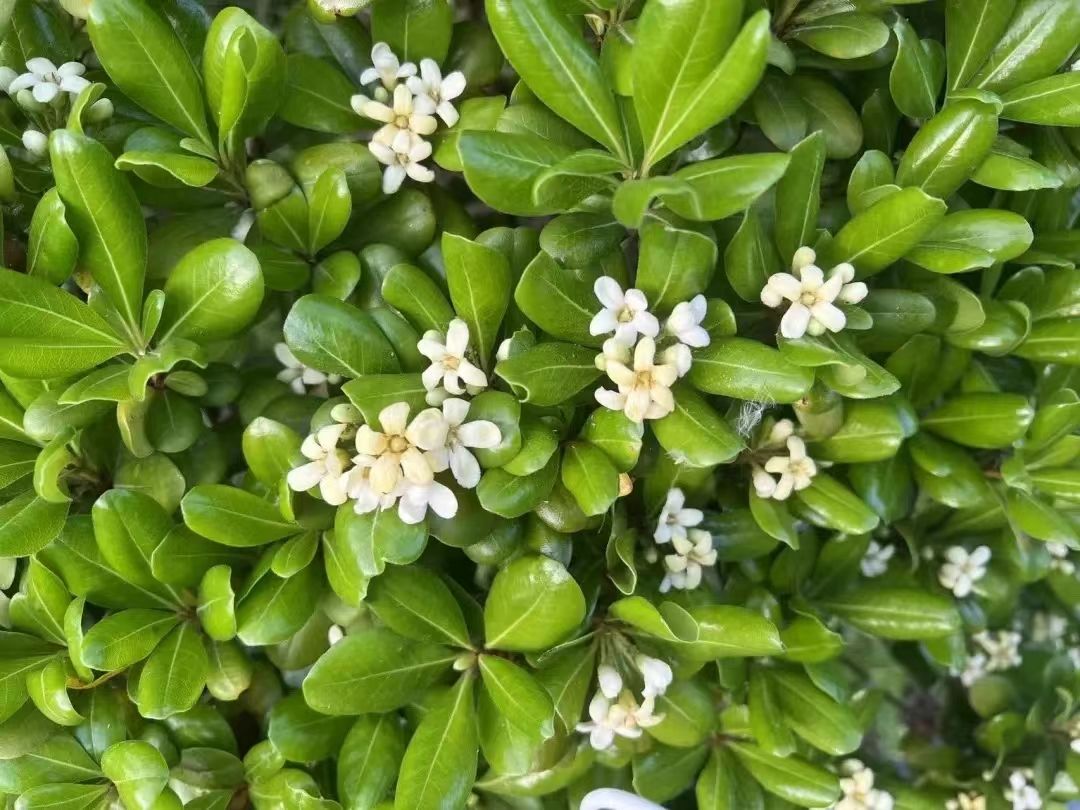 海桐有着七里香的美名,它的香味需要你用心去留意,凑近了然后深深地吸一口气,会闻到清爽中带有一 丝甜味。你从它近旁走过,带走一丝丝香气。